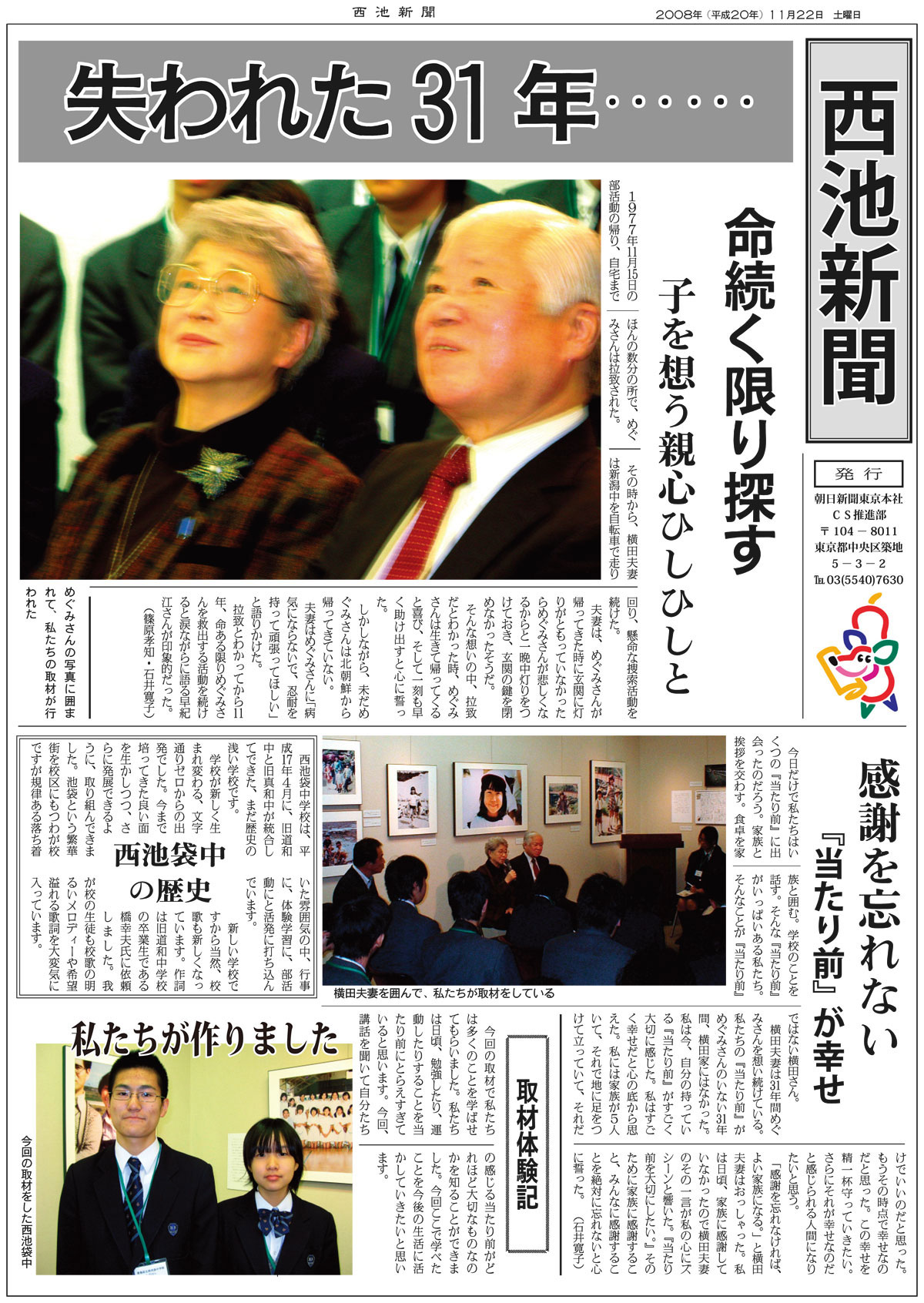 このミニ新聞はH20.11.20に行われた横田夫妻との対談・取材活動のあと、翌々日から写真展で公開するため、統一フォーマットで作って貰ったものです。